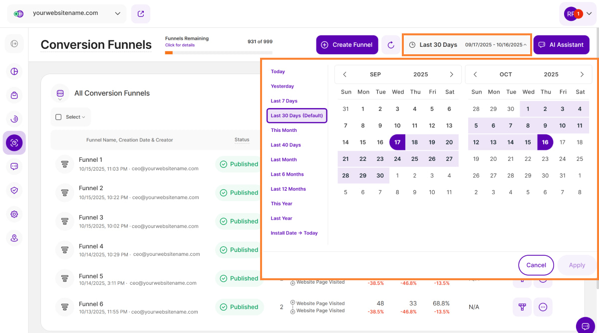 • Funnel Name: The assigned name for your funnel. This can be edited.