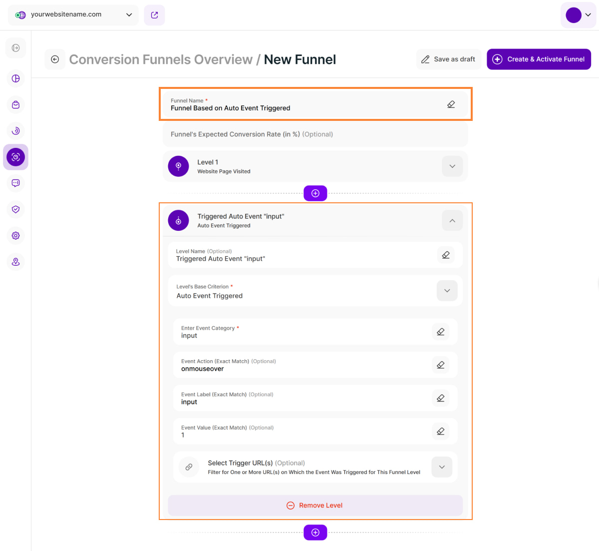 You'll see the following fields to fine-tune your funnel level: