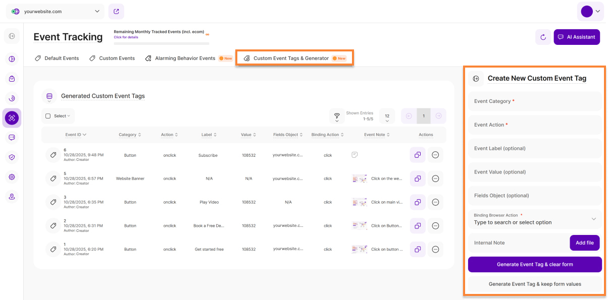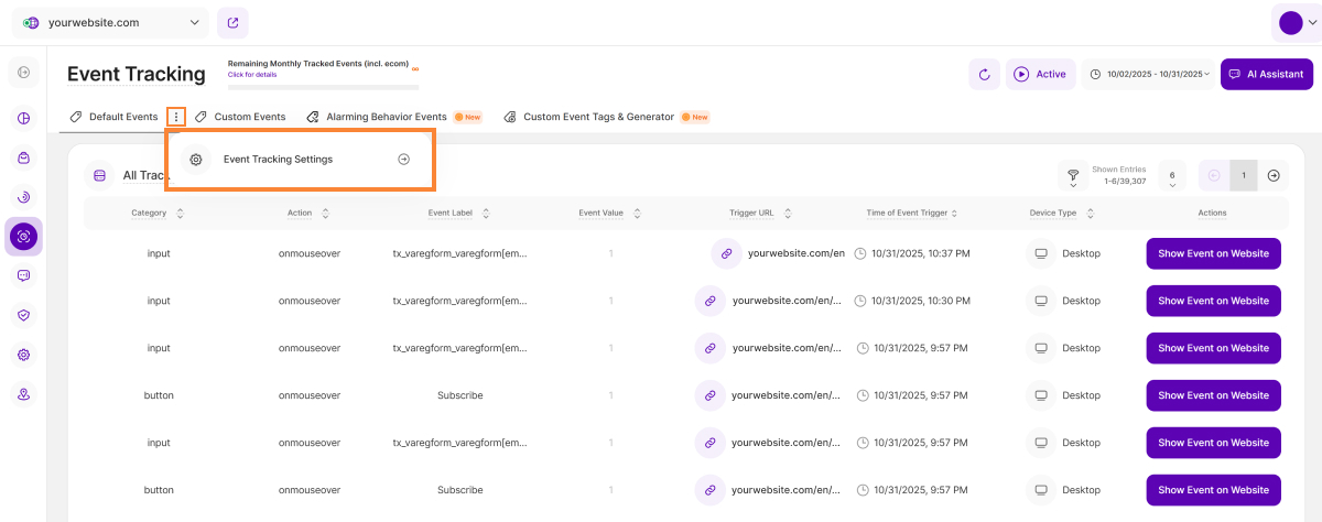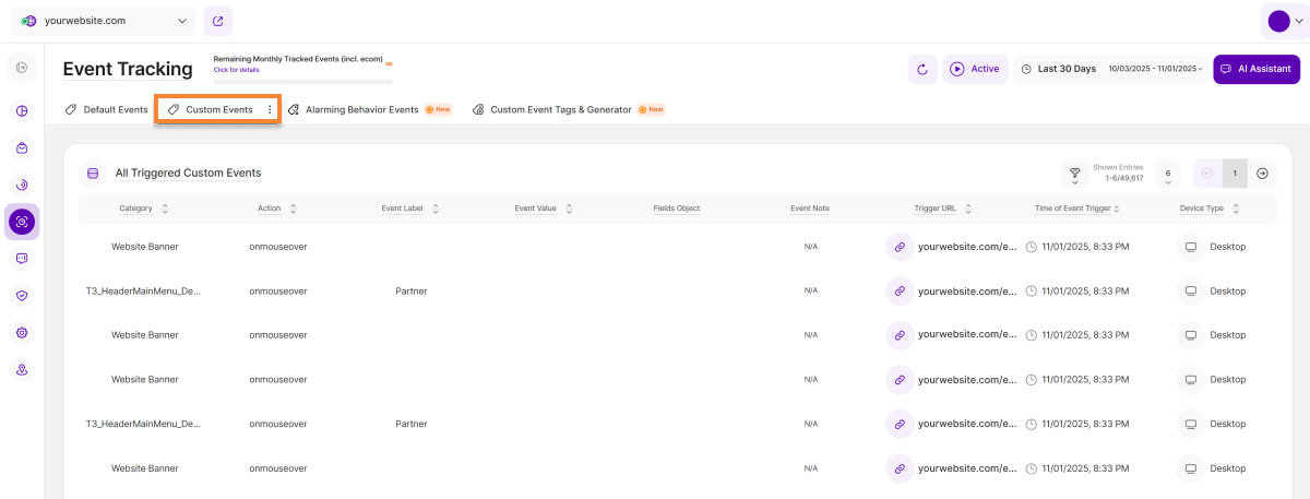 • Time of Event Trigger: Shows the precise date and time each event was triggered on your website.
