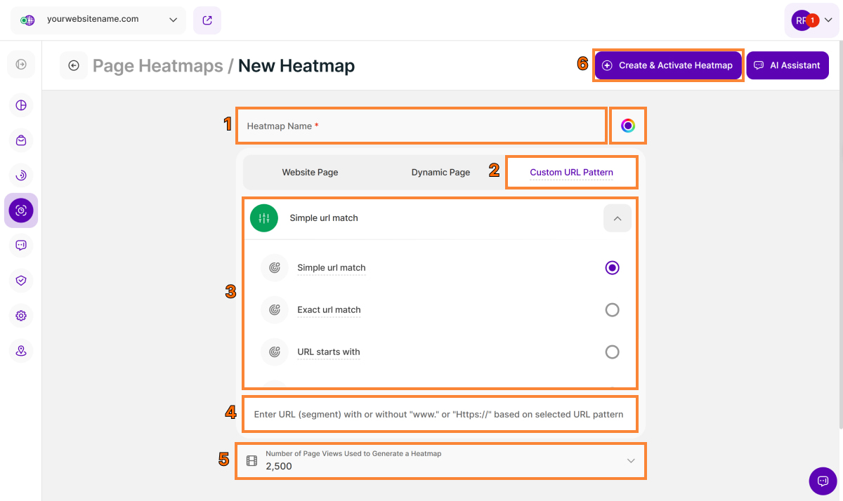 Follow these steps to set up a heatmap using the Custom URL Pattern option: