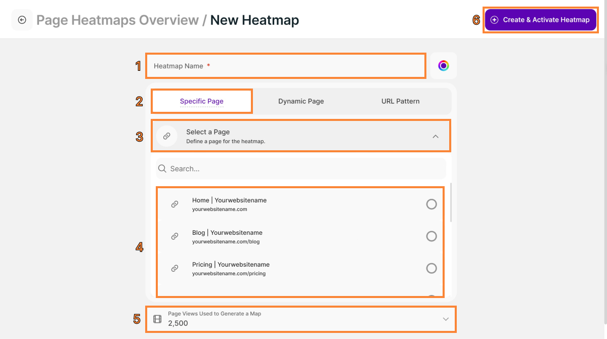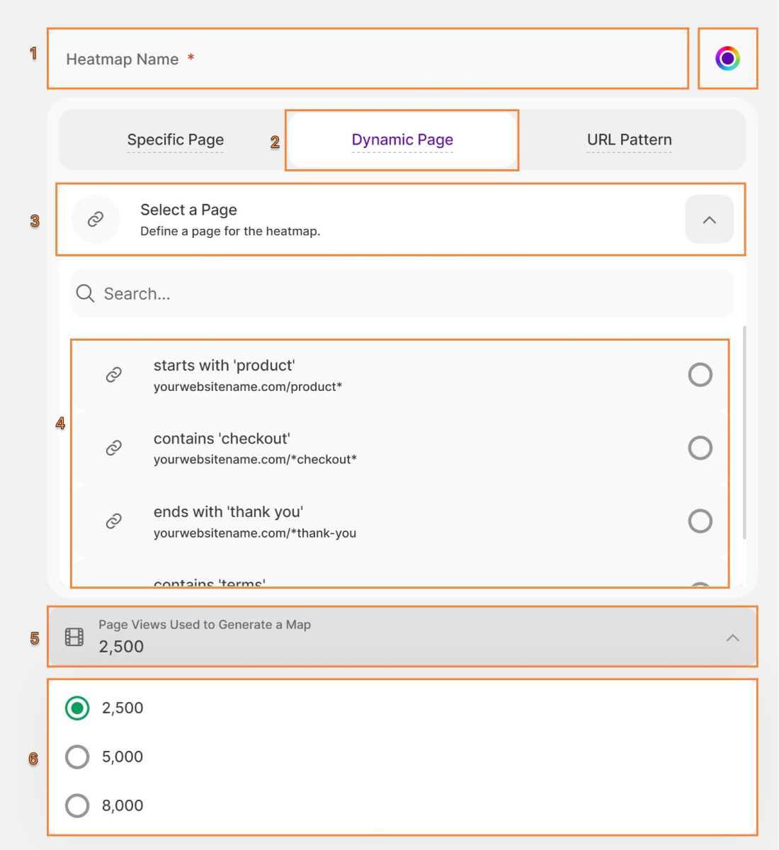 6. Select the number of page views to be used to generate the heatmap. You can choose between 2,500, 5,000, or 8,000 page views.