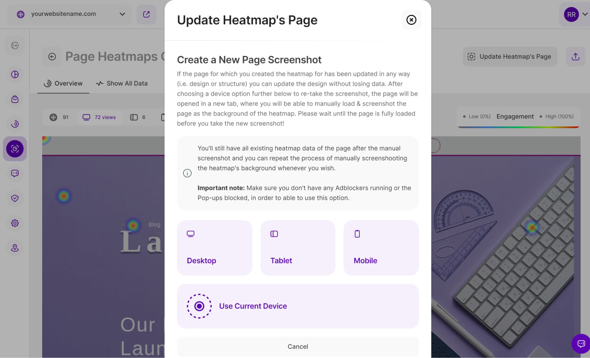 Follow these step-by-step guide to update your heatmap's screenshot: