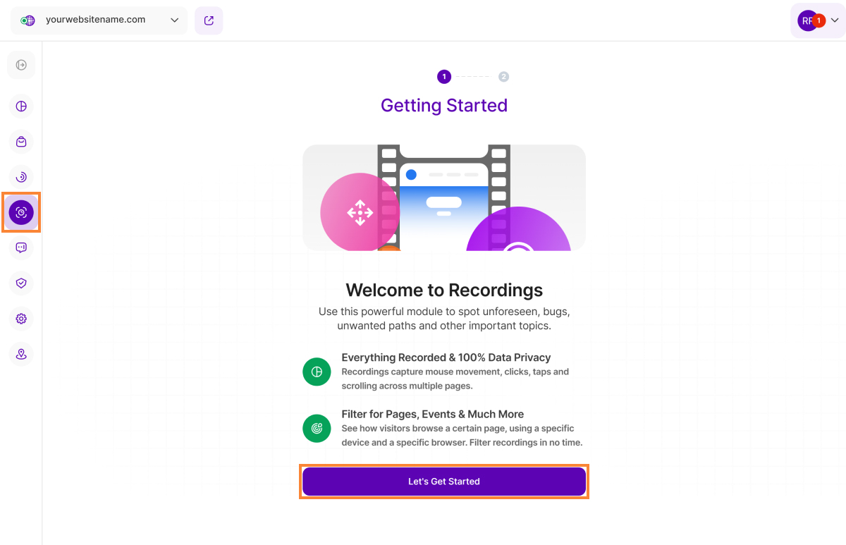 The Session Recordings feature is now active and will begin collecting new visitor data according to your specified settings.