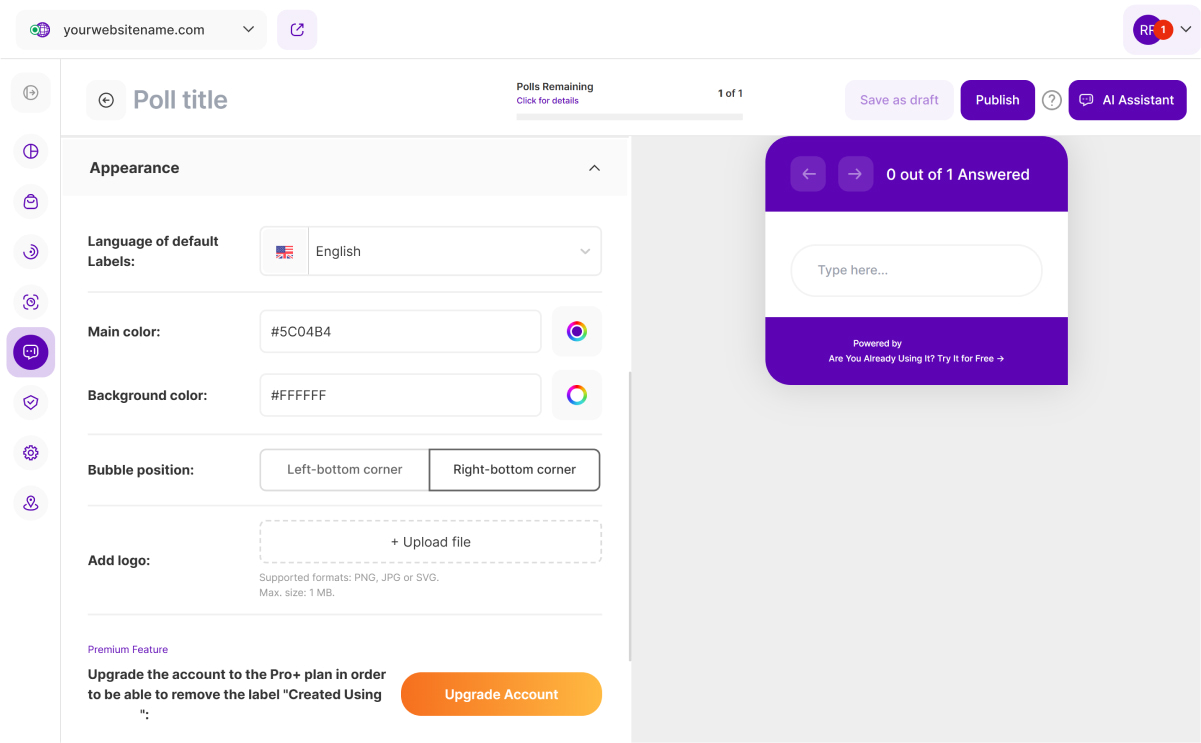 - Main color: Choose the main color of your poll to match your website and brand identity.