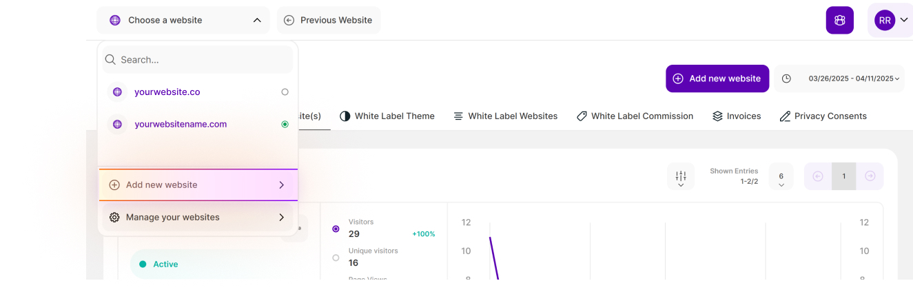 Step 2: Navigate to [Add new website]