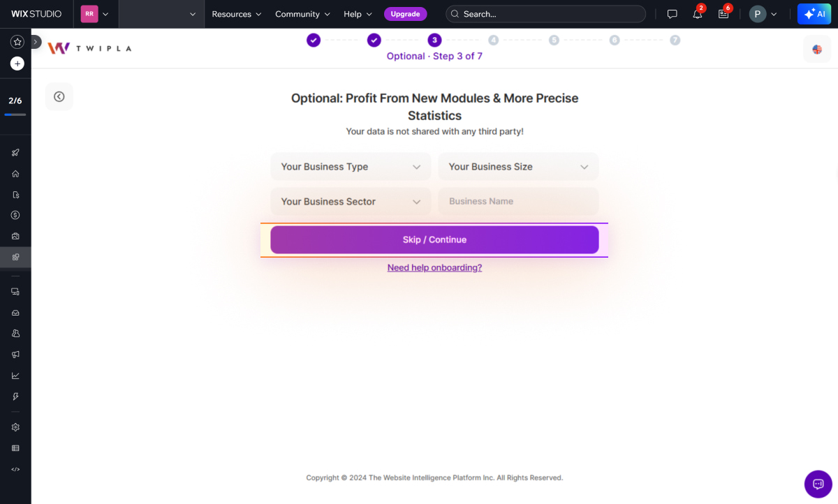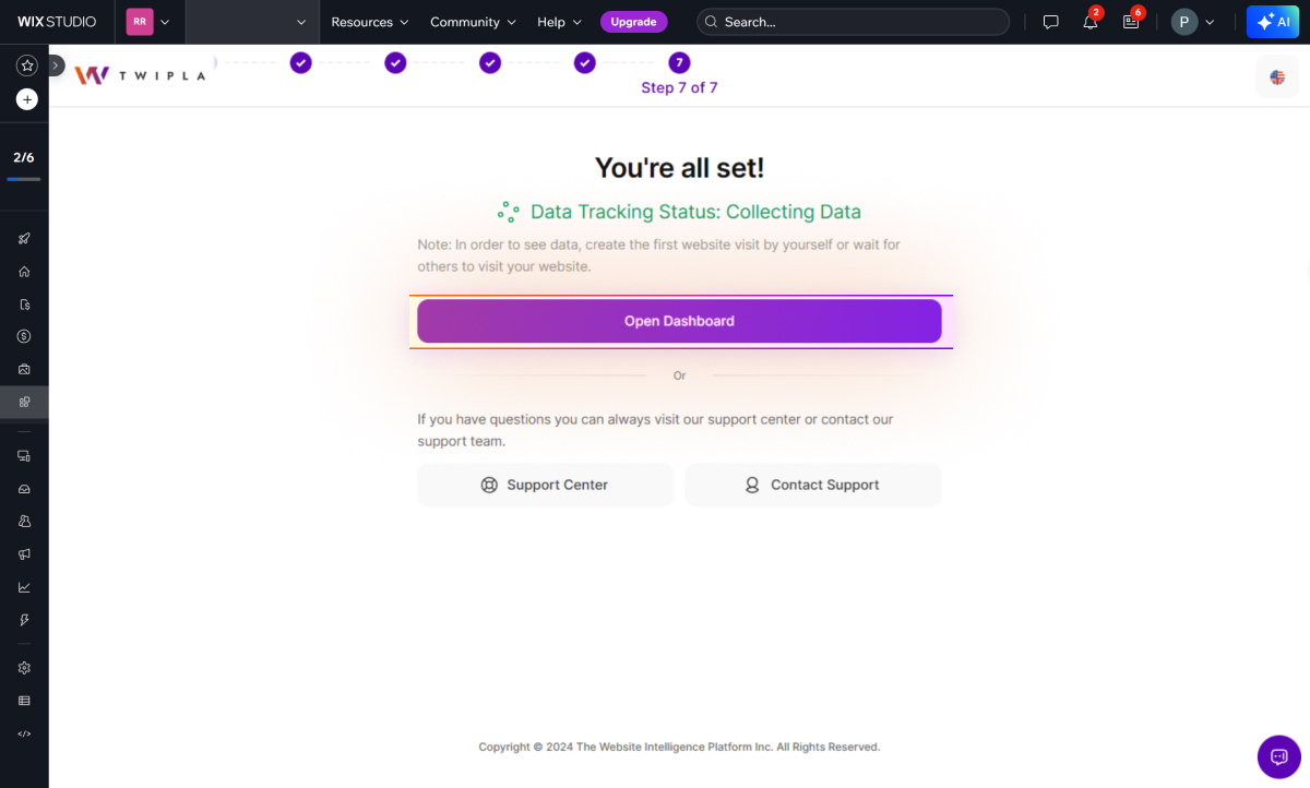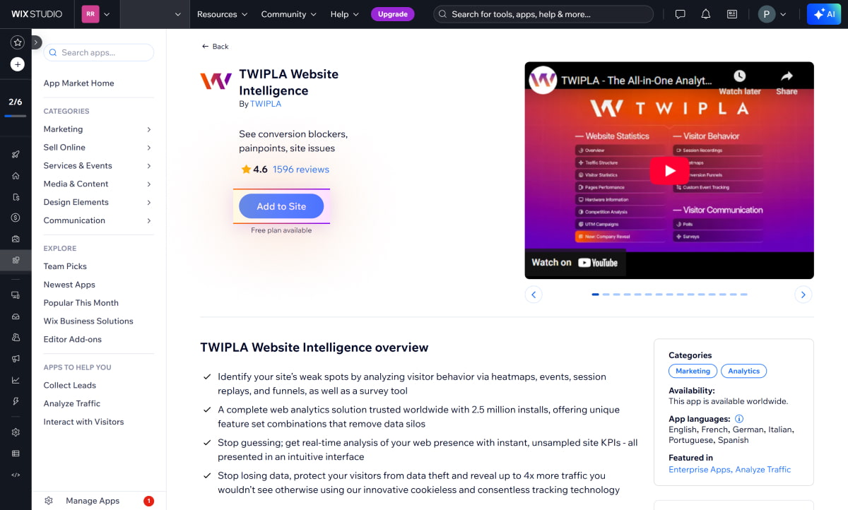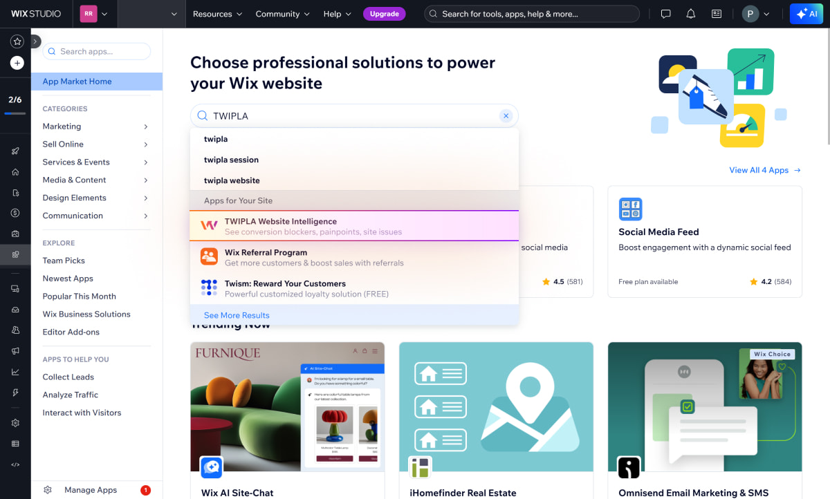 Obțineți rapid TWIPLA pe site-ul dvs. Wix! Trebuie doar să instalați plugin-ul TWIPLA Website Intelligence din Wix App Market și apoi să urmați ghidul nostru de instalare pas cu pas de mai jos.