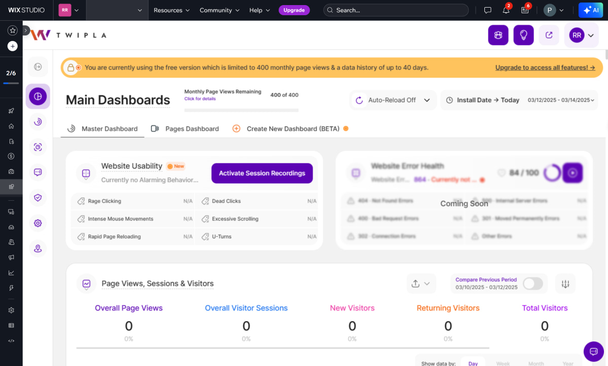 Cu toate acestea, pentru a gestiona eficient un site Wix, proprietarii de site-uri web trebuie să urmărească traficul de pe site-ul lor. Din fericire, există plugin-uri disponibile, cum ar fi TWIPLA, care se integrează fără probleme cu Wix. Odată instalat, TWIPLA vă oferă următoarele informații și funcționalități pentru o mai bună gestionare a site-ului web: