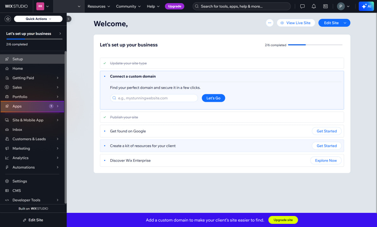- Selectați site-ul dvs. Wix