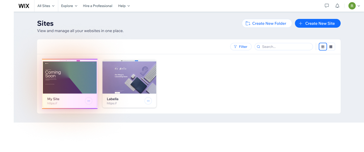 1. În contul dvs. Wix, navigați la Site-uri, pentru a vizualiza lista site-urilor dvs. web, și selectați site-ul web unde doriți să instalați aplicația noastră.